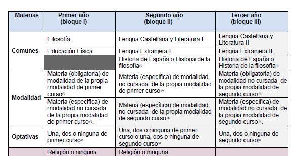 DISTRIBUCIÓN HORARIA Y DE MATERIAS DEL BACHILLERATO EN TRES CURSOS ACADÉMICOS